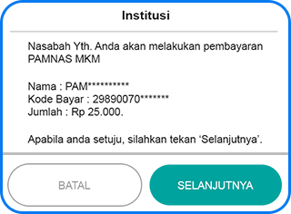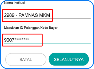 3. Pilih nama institusi “PAMNAS MKM” kemudian masukkan Nomor VA